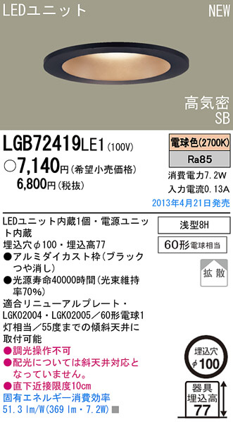 Panasonic LED ¥À¥¦¥ó¥é¥¤¥È ÏÂÉ÷¾ÈÌÀ LGB72419LE1