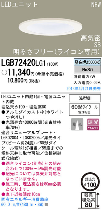 Panasonic LED ¥À¥¦¥ó¥é¥¤¥È LGB72420LG1