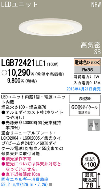 Panasonic LED ¥À¥¦¥ó¥é¥¤¥È LGB72421LE1