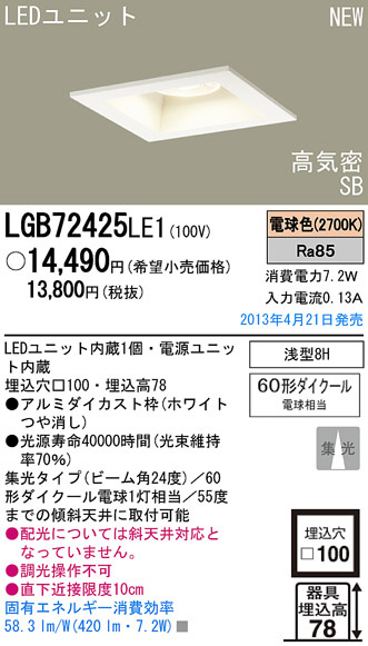 Panasonic LED ¥À¥¦¥ó¥é¥¤¥È LGB72425LE1