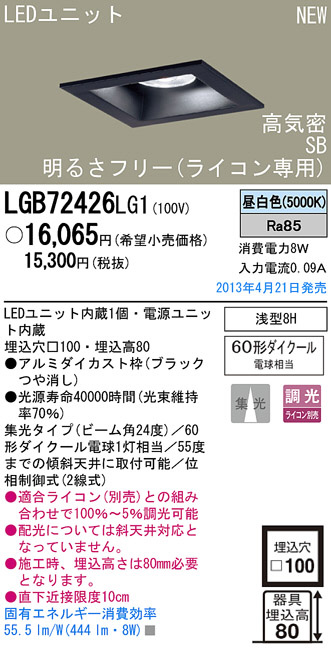 Panasonic LED ¥À¥¦¥ó¥é¥¤¥È ÏÂÉ÷¾ÈÌÀ LGB72426LG1