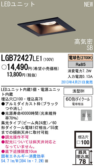 Panasonic LED ¥À¥¦¥ó¥é¥¤¥È ÏÂÉ÷¾ÈÌÀ LGB72427LE1
