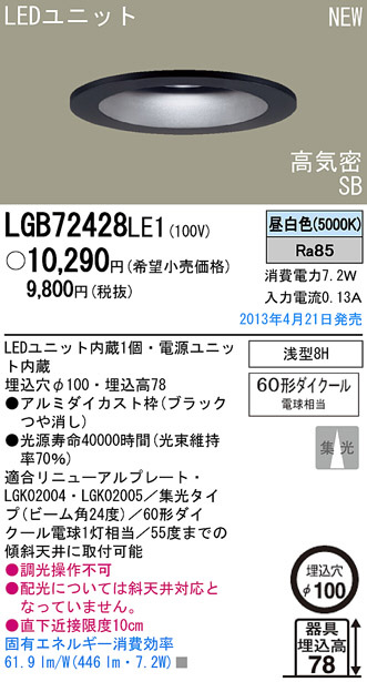 Panasonic LED ¥À¥¦¥ó¥é¥¤¥È ÏÂÉ÷¾ÈÌÀ LGB72428LE1