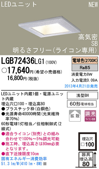 Panasonic LED ¥À¥¦¥ó¥é¥¤¥È ÏÂÉ÷¾ÈÌÀ LGB72436LG1
