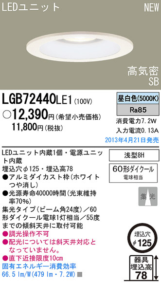 Panasonic LED ¥À¥¦¥ó¥é¥¤¥È LGB72440LE1