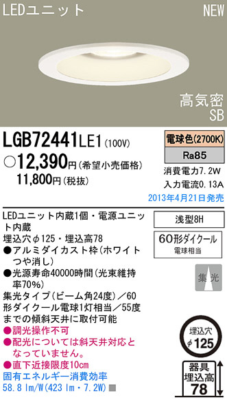 Panasonic LED ¥À¥¦¥ó¥é¥¤¥È LGB72441LE1