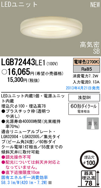Panasonic LED ¥À¥¦¥ó¥é¥¤¥È LGB72443LE1