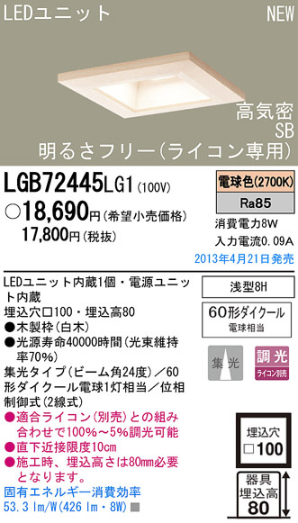Panasonic LED ¥À¥¦¥ó¥é¥¤¥È ÏÂÉ÷¾ÈÌÀ LGB72445LG1