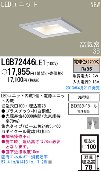 Panasonic LED ¥À¥¦¥ó¥é¥¤¥È ÏÂÉ÷¾ÈÌÀ LGB72446LE1
