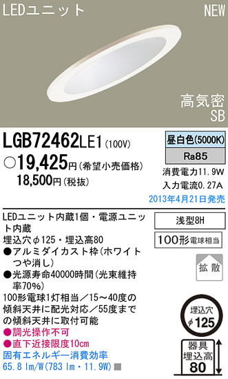 Panasonic LED ¥À¥¦¥ó¥é¥¤¥È LGB72462LE1