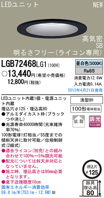 Panasonic LED ¥À¥¦¥ó¥é¥¤¥È ÏÂÉ÷¾ÈÌÀ LGB72468LG1