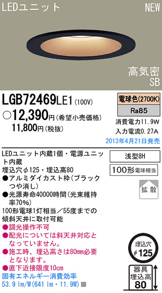 Panasonic LED ¥À¥¦¥ó¥é¥¤¥È ÏÂÉ÷¾ÈÌÀ LGB72469LE1