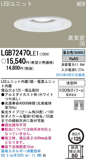 Panasonic LED ¥À¥¦¥ó¥é¥¤¥È LGB72470LE1