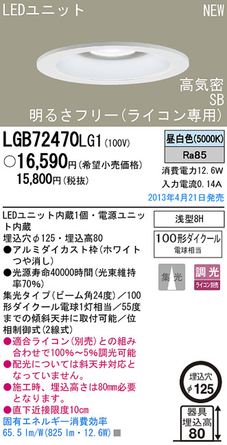 Panasonic LED ¥À¥¦¥ó¥é¥¤¥È LGB72470LG1