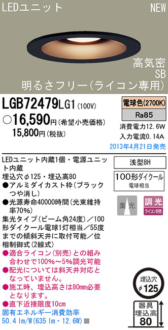 Panasonic LED ¥À¥¦¥ó¥é¥¤¥È ÏÂÉ÷¾ÈÌÀ LGB72479LG1