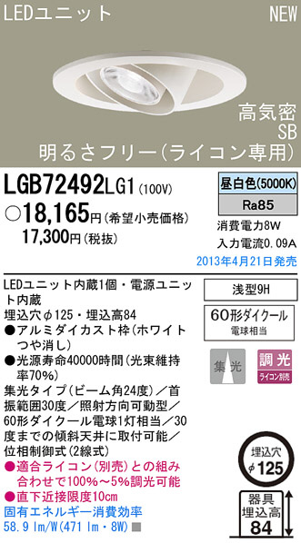 Panasonic LED ¥À¥¦¥ó¥é¥¤¥È LGB72492LG1