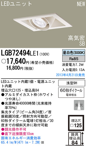 Panasonic LED ¥À¥¦¥ó¥é¥¤¥È LGB72494LE1