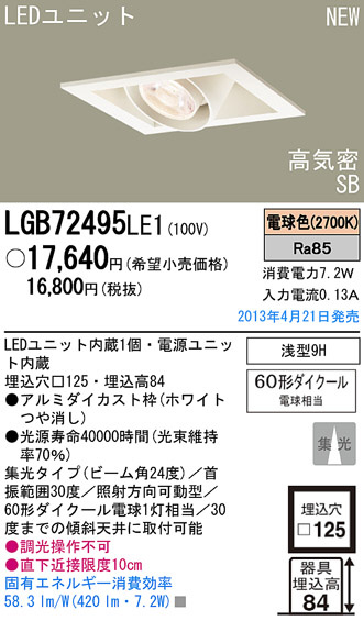 Panasonic LED ¥À¥¦¥ó¥é¥¤¥È LGB72495LE1