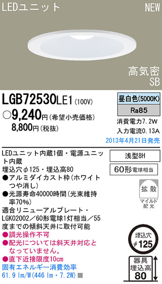 Panasonic LED ¥À¥¦¥ó¥é¥¤¥È LGB72530LE1