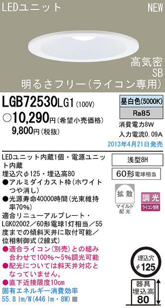 Panasonic LED ¥À¥¦¥ó¥é¥¤¥È LGB72530LG1