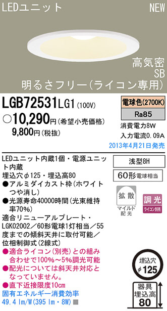 Panasonic LED ¥À¥¦¥ó¥é¥¤¥È LGB72531LG1