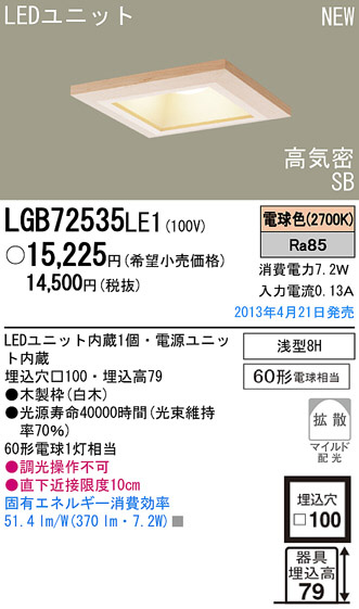 Panasonic LED ¥À¥¦¥ó¥é¥¤¥È ÏÂÉ÷¾ÈÌÀ LGB72535LE1