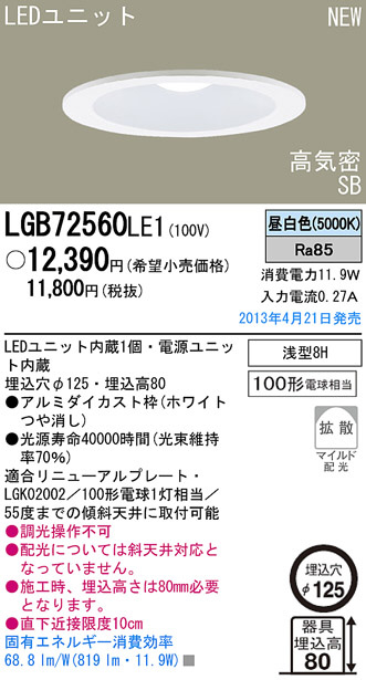 Panasonic LED ¥À¥¦¥ó¥é¥¤¥È LGB72560LE1