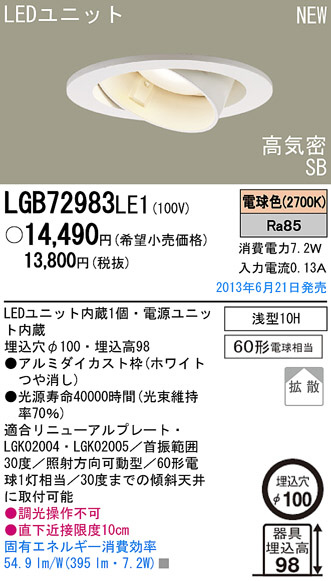 Panasonic LED ¥À¥¦¥ó¥é¥¤¥È LGB72983LE1