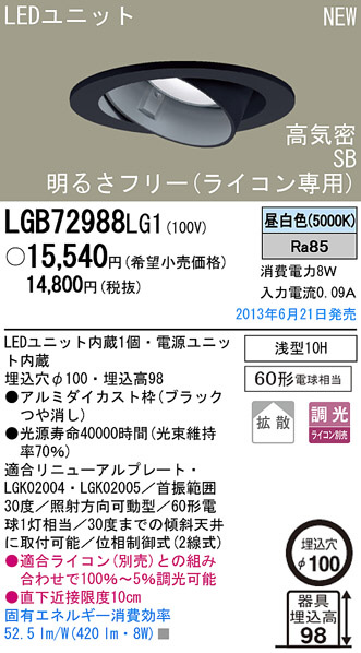 Panasonic LED ¥À¥¦¥ó¥é¥¤¥È LGB72988LG1