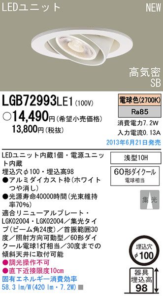 Panasonic LED ¥À¥¦¥ó¥é¥¤¥È LGB72993LE1