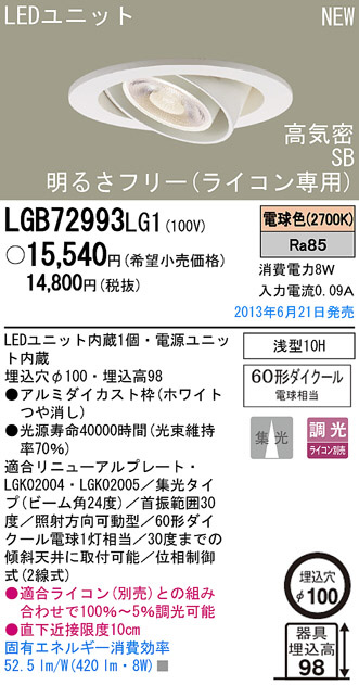 Panasonic LED ¥À¥¦¥ó¥é¥¤¥È LGB72993LG1
