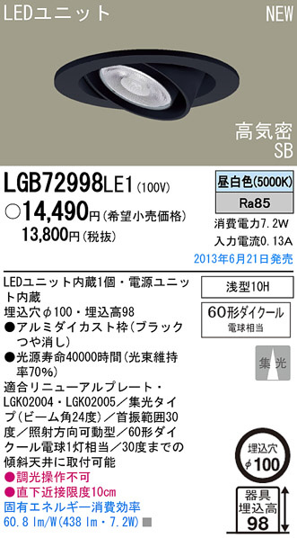 Panasonic LED ¥À¥¦¥ó¥é¥¤¥È LGB72998LE1