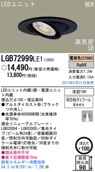 Panasonic LED ¥À¥¦¥ó¥é¥¤¥È LGB72999LE1