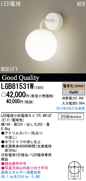 Panasonic LED ¥Ö¥é¥±¥Ã¥È LGB81531W