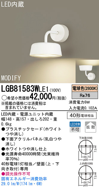 Panasonic LED ¥Ö¥é¥±¥Ã¥È LGB81583WLE1