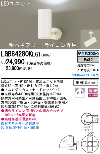 Panasonic LED ¥¹¥Ý¥Ã¥È¥é¥¤¥È LGB84280KLG1