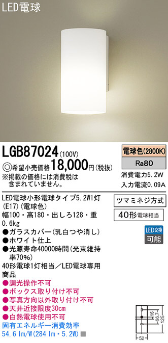 Panasonic LED ¥Ö¥é¥±¥Ã¥È LGB87024