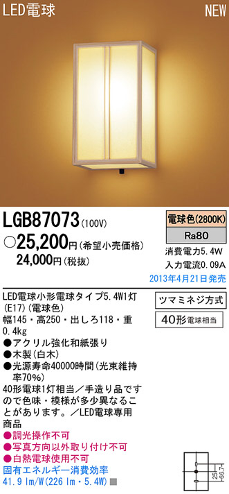 Panasonic LED ¥Ö¥é¥±¥Ã¥È ÏÂÉ÷¾ÈÌÀ LGB87073