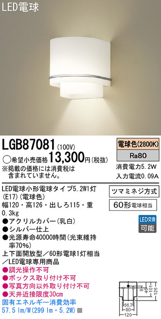 Panasonic LED ¥Ö¥é¥±¥Ã¥È LGB87081