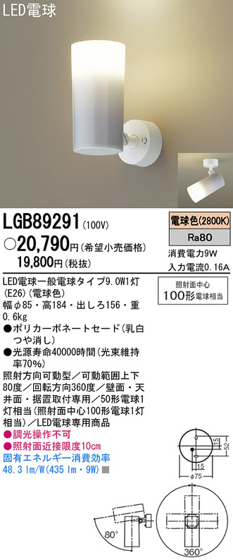 Panasonic LED ¥¹¥Ý¥Ã¥È¥é¥¤¥È LGB89291