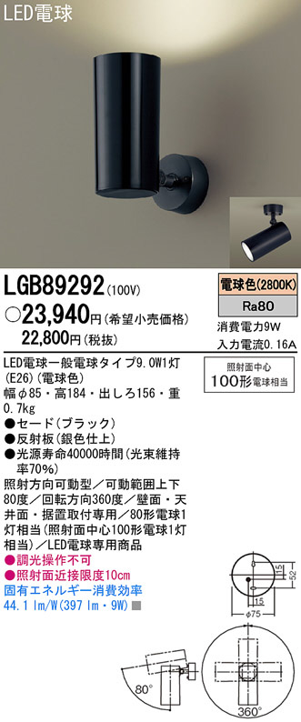 Panasonic LED ¥¹¥Ý¥Ã¥È¥é¥¤¥È LGB89292