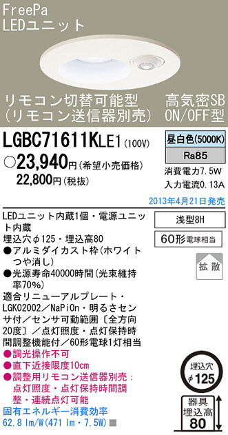 Panasonic LED ¥À¥¦¥ó¥é¥¤¥È LGBC71611KLE1