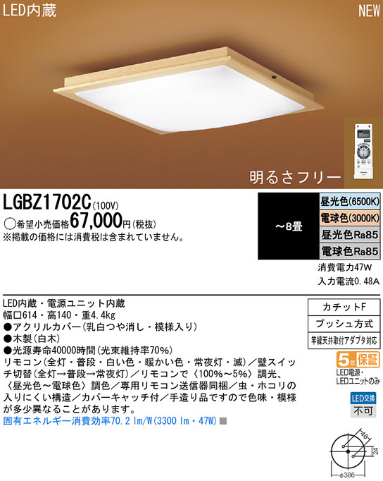 Panasonic LED ¥·¡¼¥ê¥ó¥° ÏÂÉ÷¾ÈÌÀ LGBZ1702C