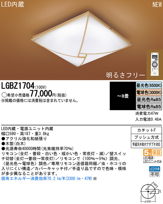 Panasonic LED ¥·¡¼¥ê¥ó¥° ÏÂÉ÷¾ÈÌÀ LGBZ1704