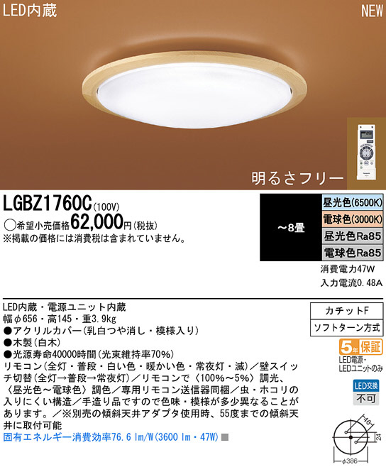 Panasonic LED ¥·¡¼¥ê¥ó¥° ÏÂÉ÷¾ÈÌÀ LGBZ1760C