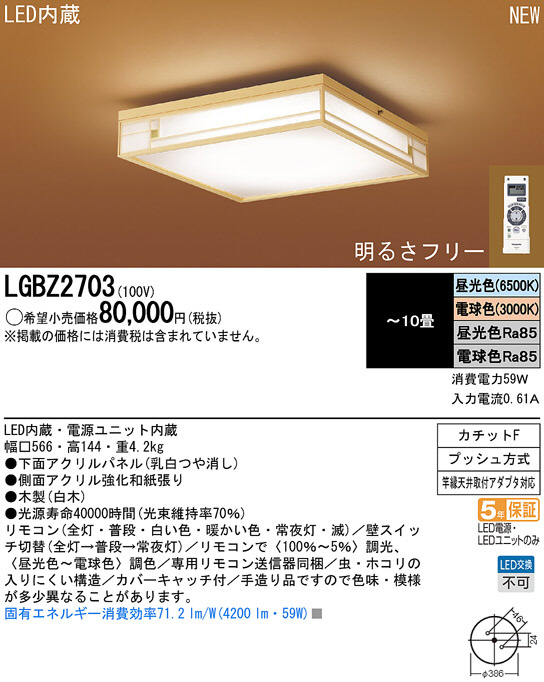 Panasonic LED ¥·¡¼¥ê¥ó¥° ÏÂÉ÷¾ÈÌÀ LGBZ2703