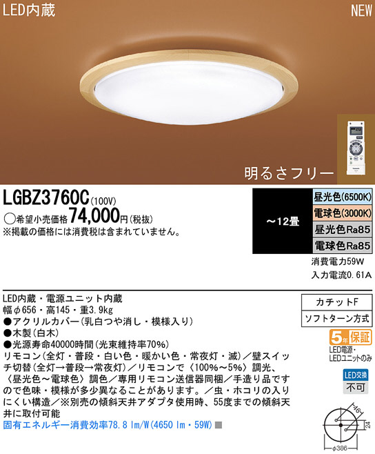 Panasonic LED ¥·¡¼¥ê¥ó¥° ÏÂÉ÷¾ÈÌÀ LGBZ3760C
