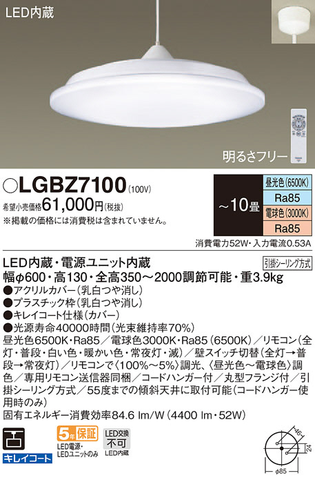 Panasonic ¥Ú¥ó¥À¥ó¥È¥é¥¤¥È LGBZ7100