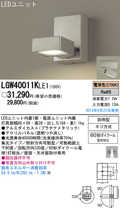 Panasonic LED ¥¢¥¦¥È¥É¥¢ LGW40011KLE1