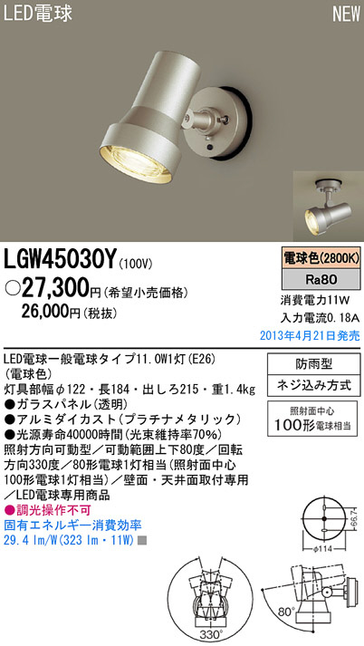 Panasonic LED ¥¢¥¦¥È¥É¥¢ LGW45030Y